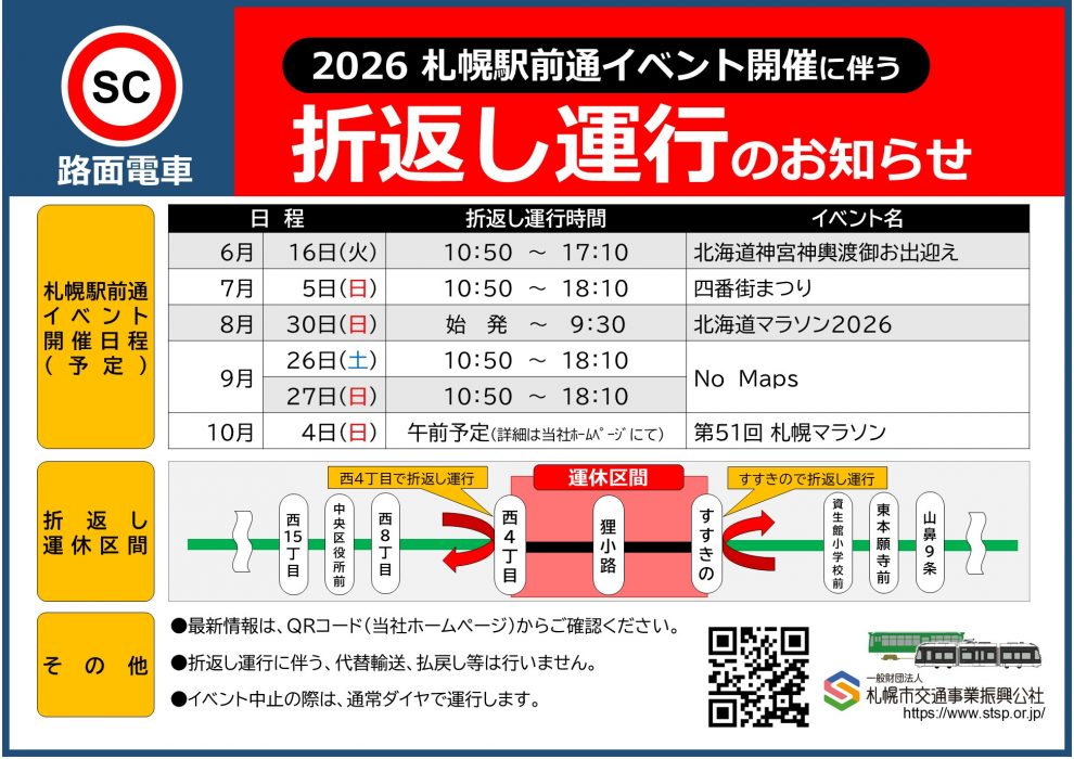 札幌市民の足として欠かせない「札幌市電」ですが、2026年は札幌駅前通で複数の大規模なイベントが予定されています。